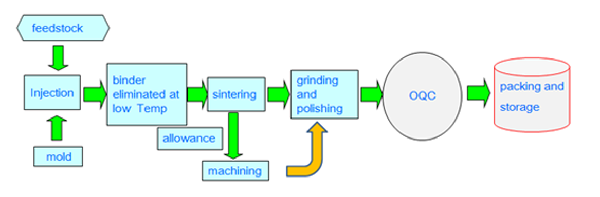 Ceramic powder injection molding (CIM) is a combination of ceramic powder and binder through injection molding to get a certain strength and density of parts.
