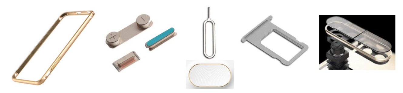 移動互聯(lián)行業(yè)簡介: 如手機邊框、結(jié)構(gòu)較為復(fù)雜的零部件或裝飾件(如:指紋圈、攝像頭底座、側(cè)按鍵、卡托、取卡針、轉(zhuǎn)軸等)